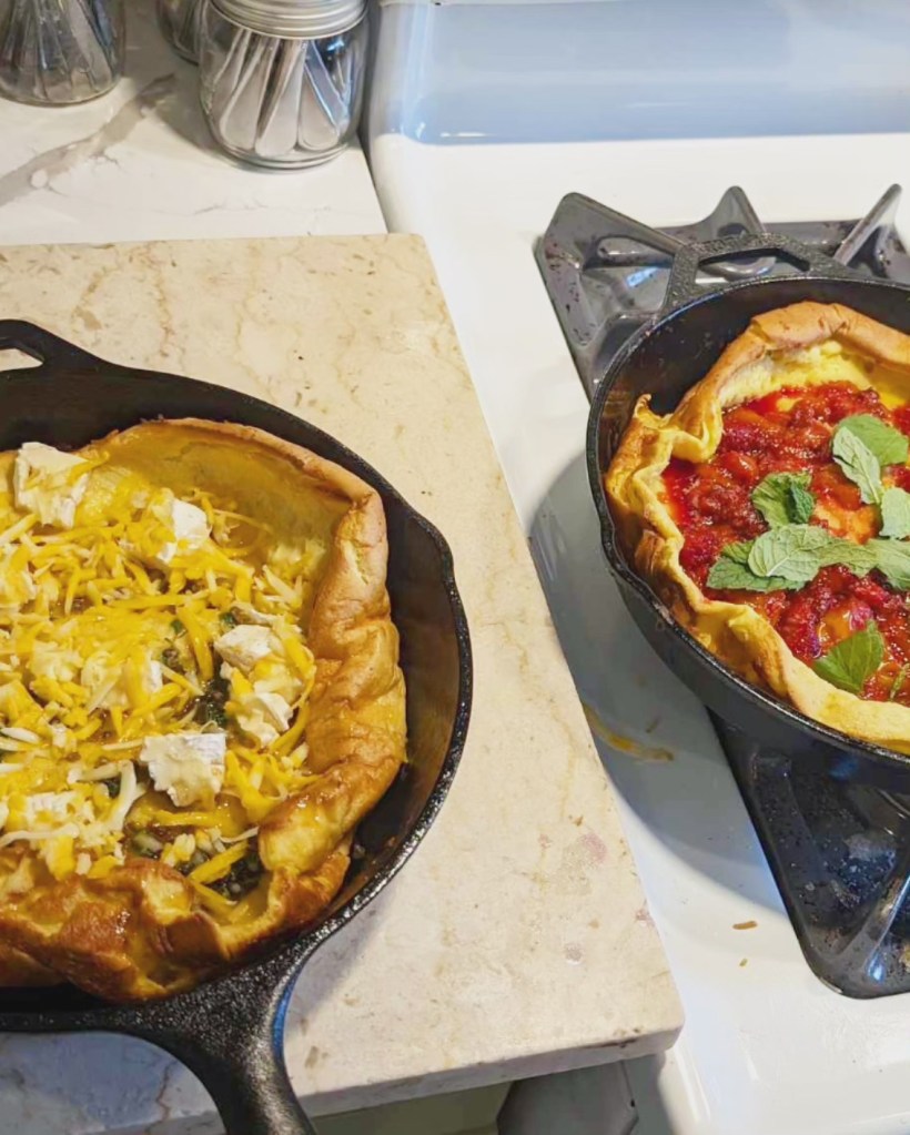 Chive blossom dutch baby pancake